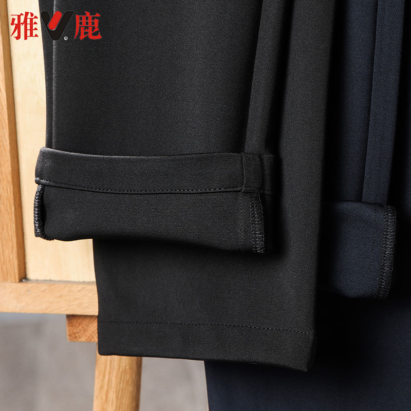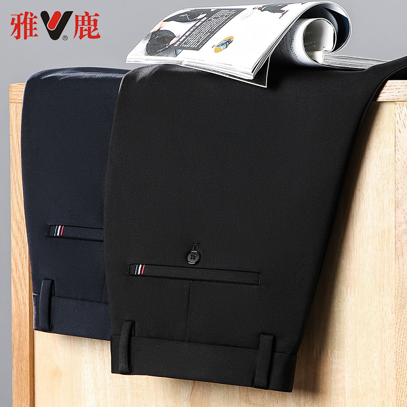 雅鹿男装休闲裤秋冬季新款中年针织长裤子商务抗皱弹力直筒西裤男