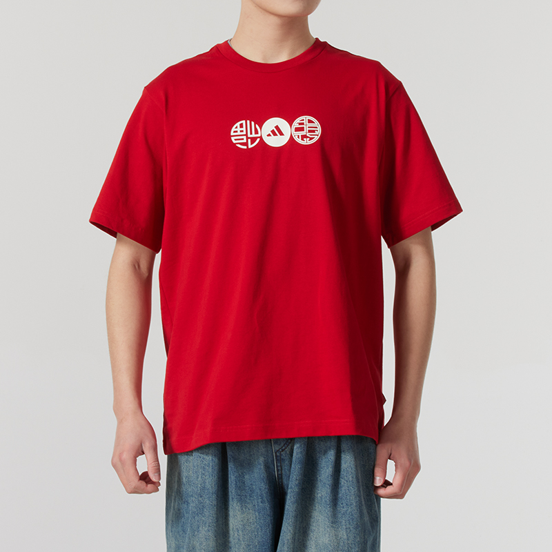 adidas阿迪达斯男装夏季新款舒适纯棉运动短袖休闲圆领宽松T恤