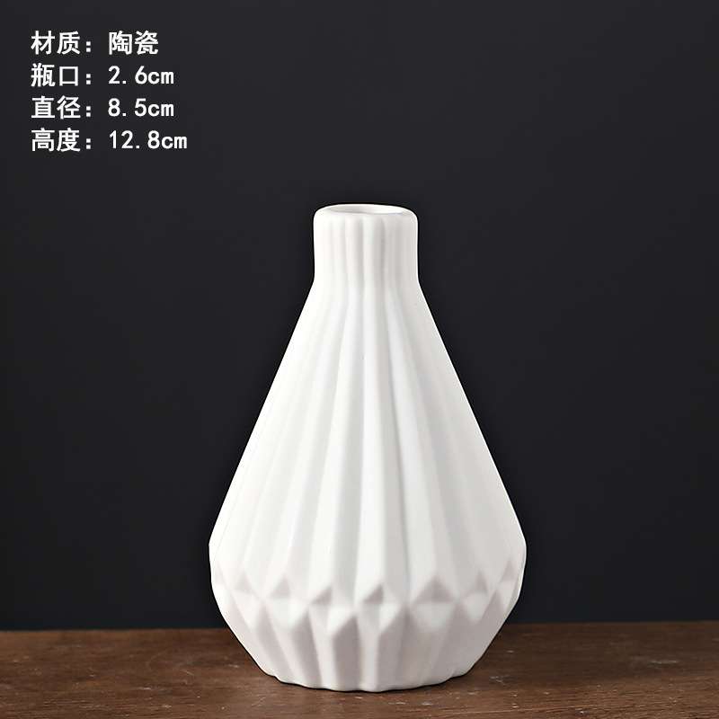 白色陶瓷花瓶 北欧现代创意家居干花插花装饰摆件条纹素烧花瓶