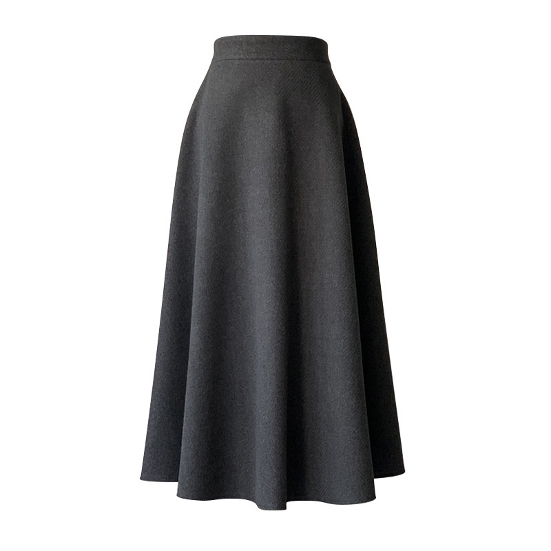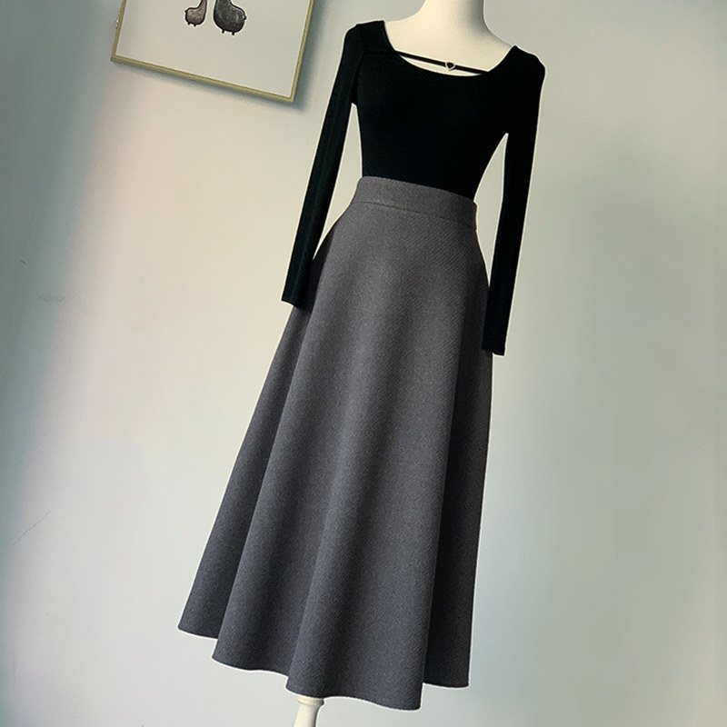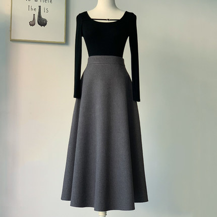 蓬蓬裙毛呢半身裙灰色a字中长裙