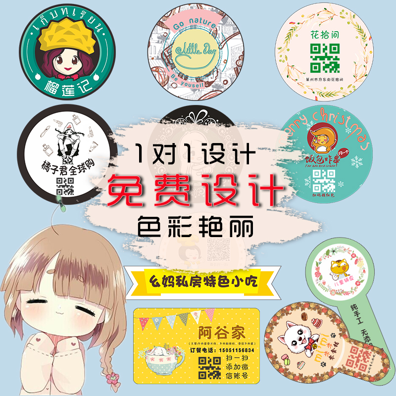 不干胶定制外卖贴纸定做封口贴奶茶标签订制商标logo印刷二维码