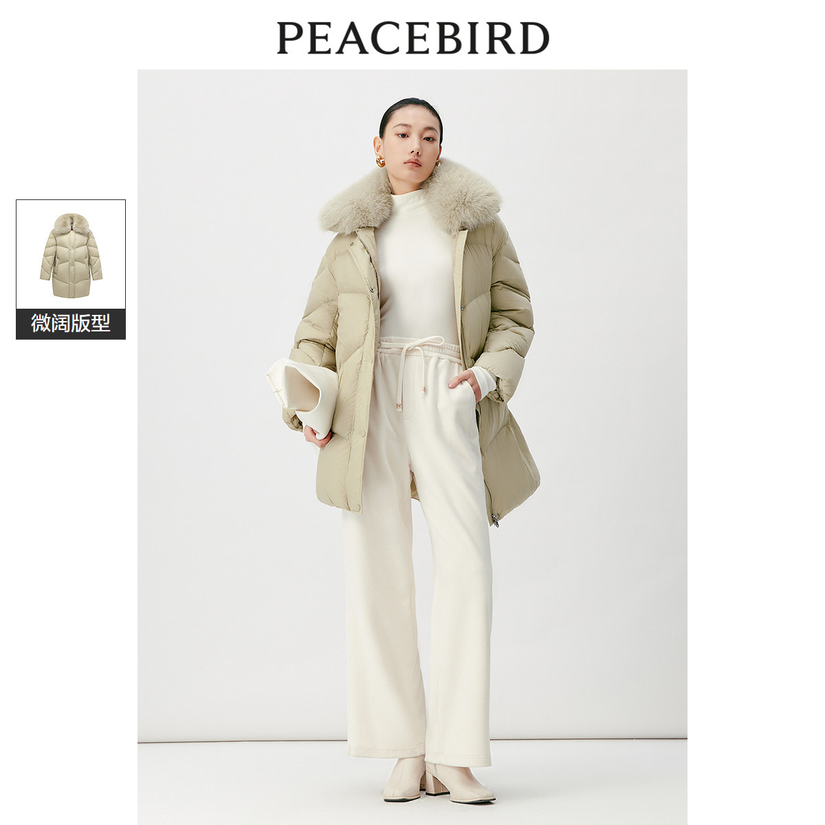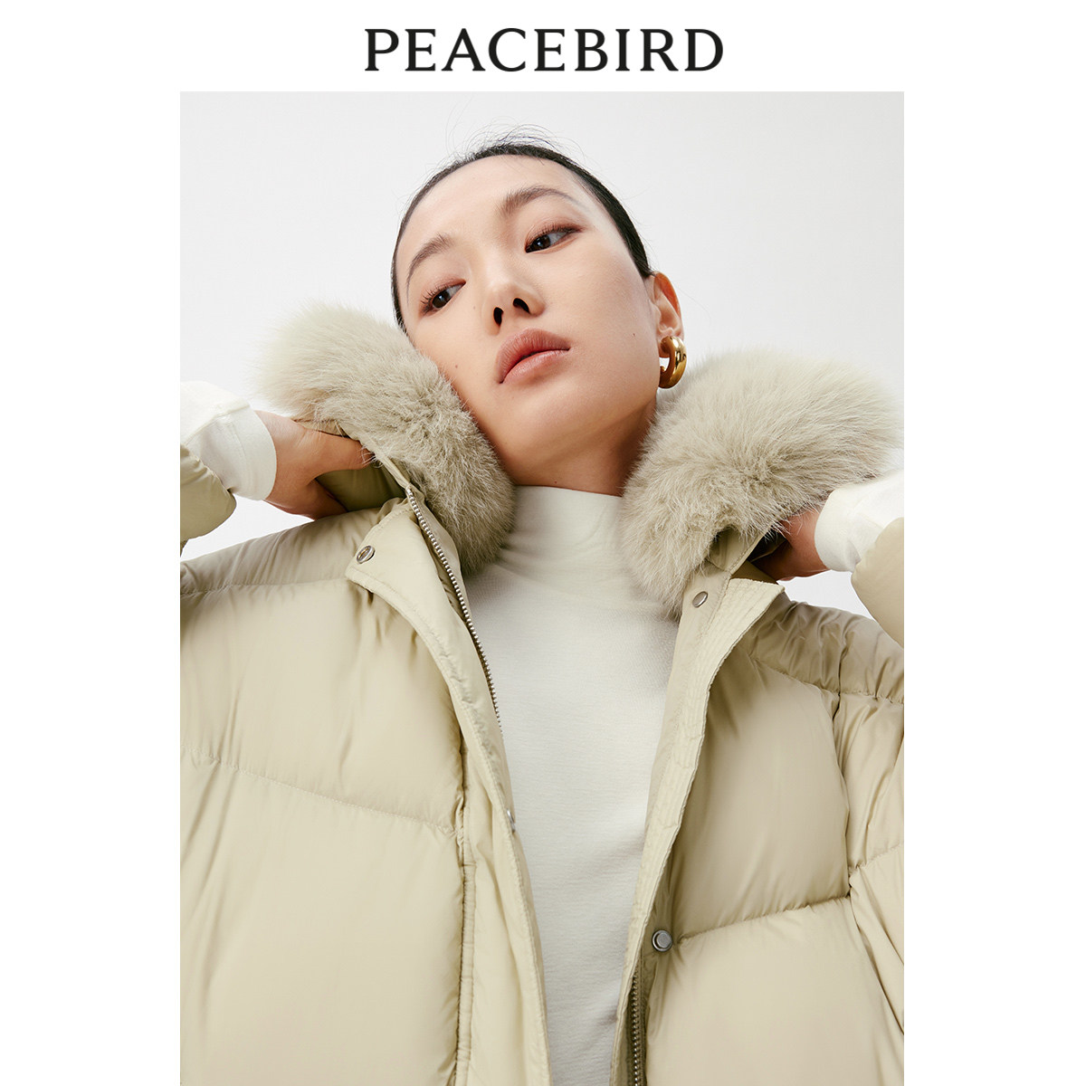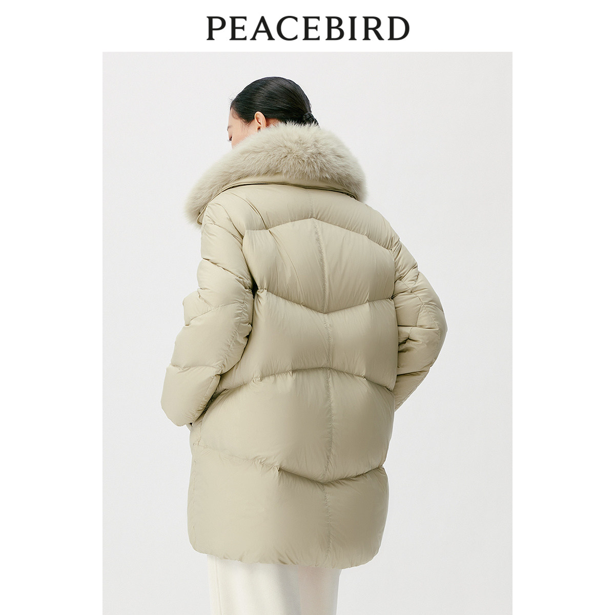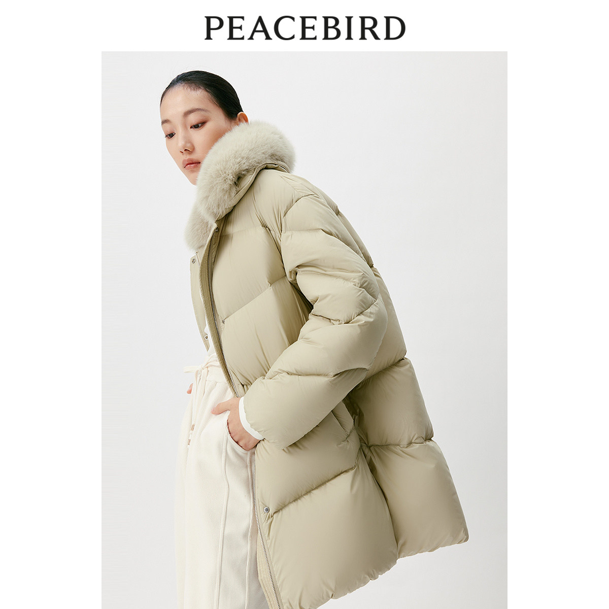 太平鸟女装冬季毛领中长款羽绒服A1ACD4538