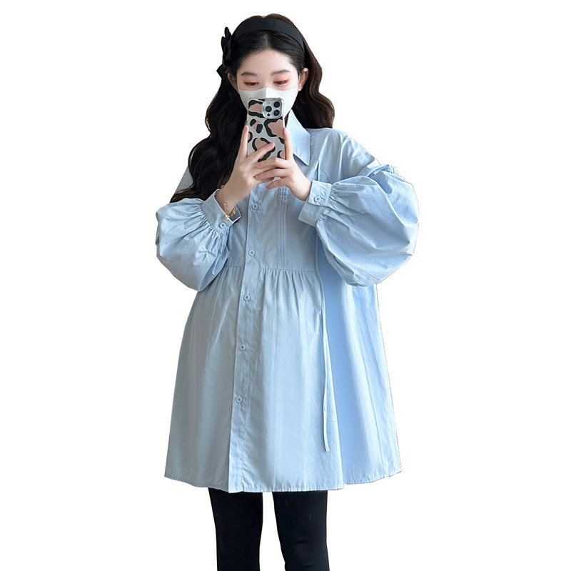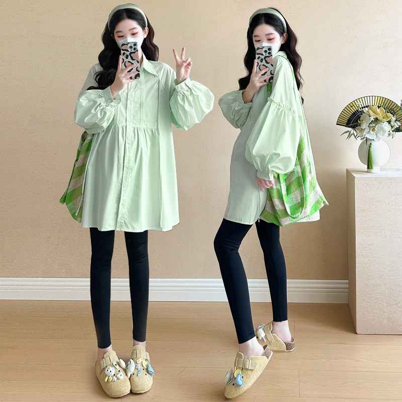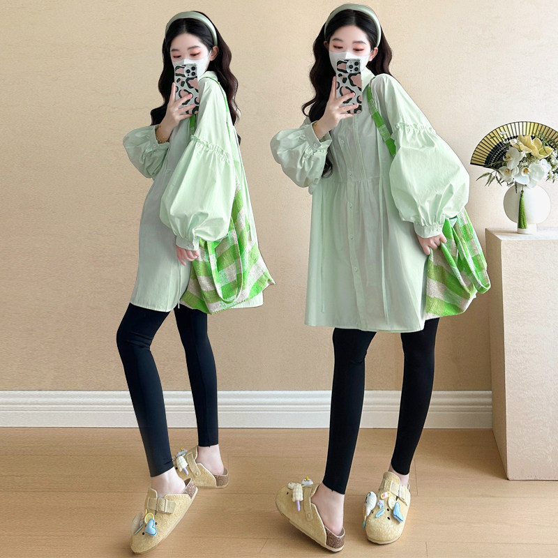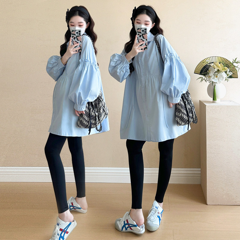 孕妇装套装2025秋季新款长袖翻领衬衫裙韩版中长款宽松大码上衣女