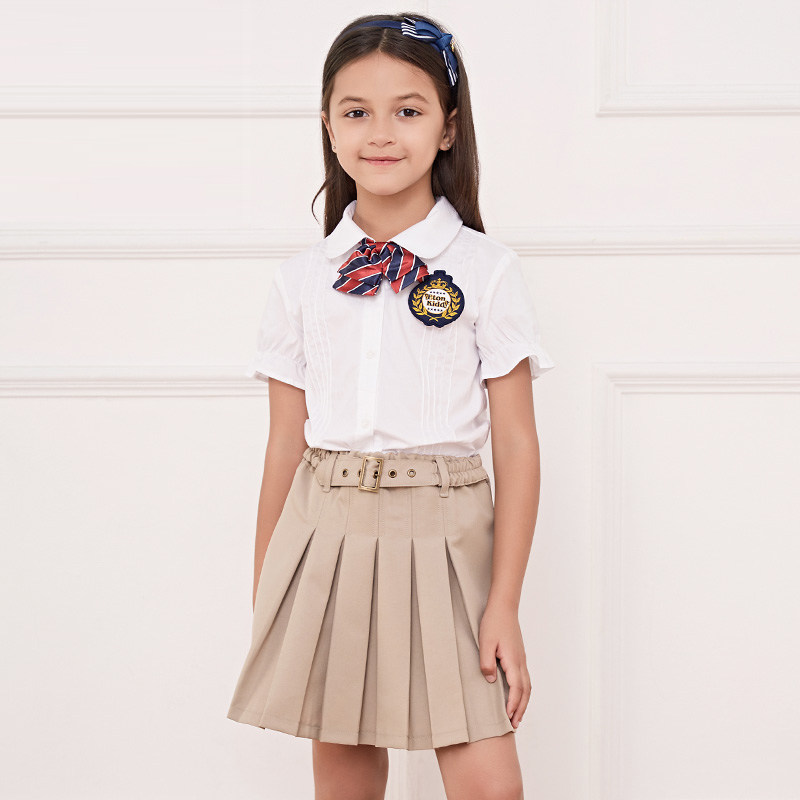 伊顿纪德校服儿童淑女卡其色半身裙女生百褶裙秋装裙子10Q261
