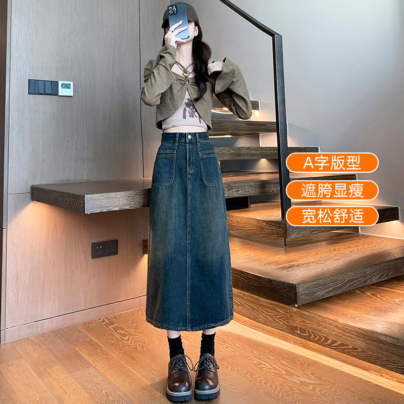 高腰牛仔半身裙女2025年新款夏季a字包臀半裙复古气质显瘦中长裙