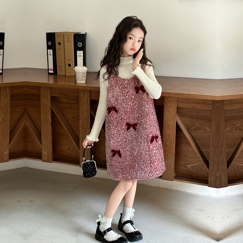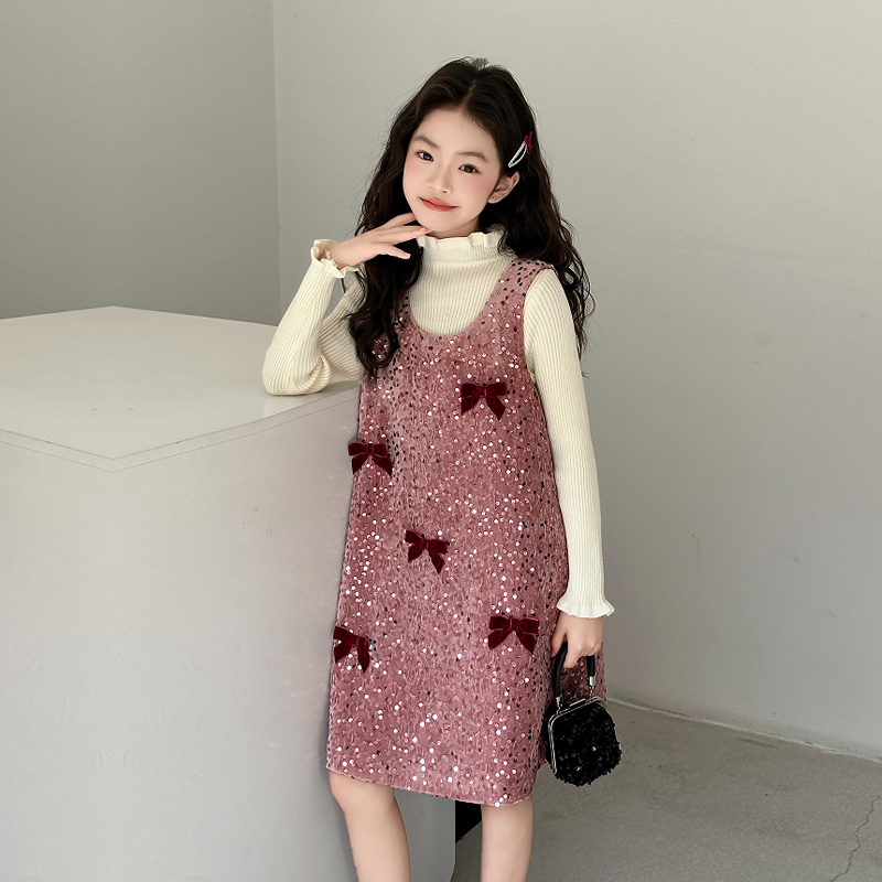 女大童冬季连衣裙亮片马甲裙高级感穿搭背心裙2025新款加厚拜年服