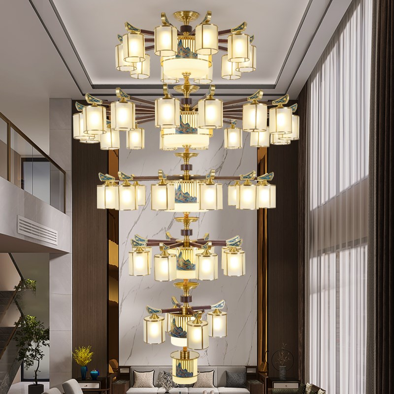 中式大吊灯别墅客厅灯复式楼挑空楼梯灯餐厅书房卧室配套大气灯具