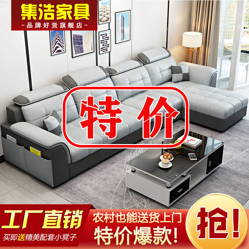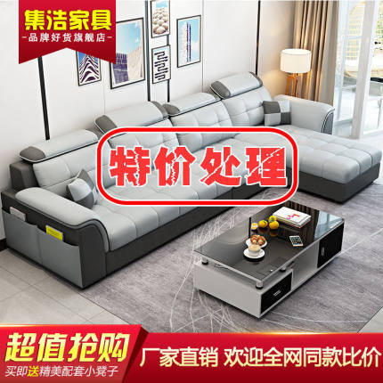 热销布艺沙发简约现代家具客厅科技布小户型组合三人位乳胶整装小
