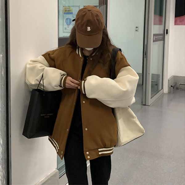 美式复古加绒加厚高街棒球服男女学院风韩版个性帅气夹克外套潮