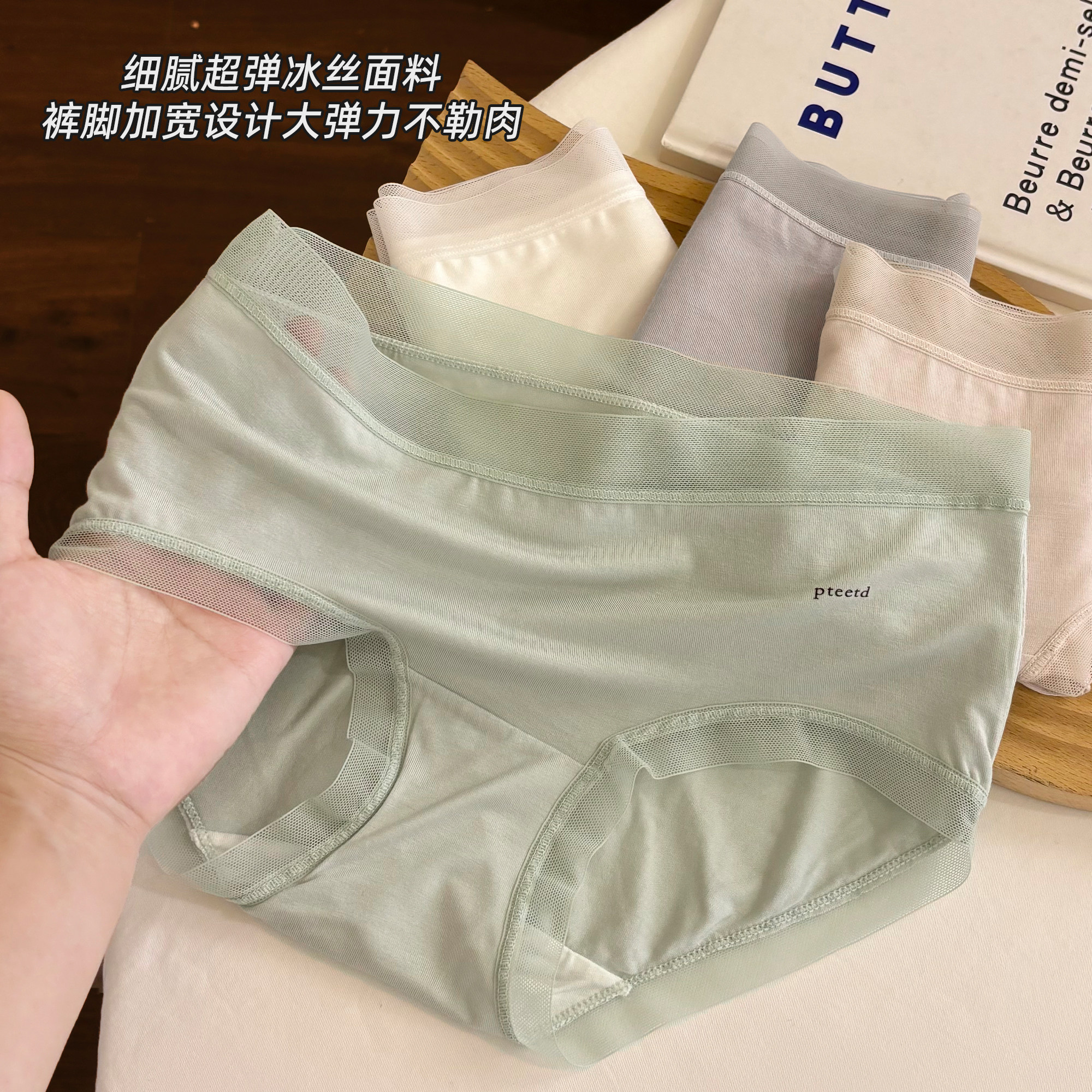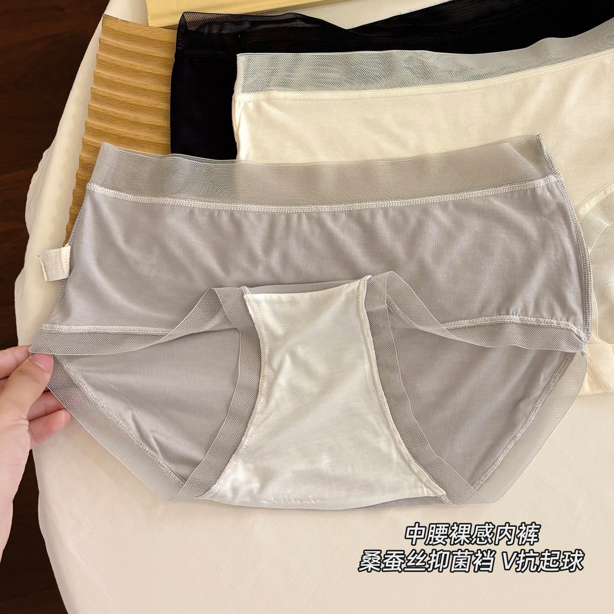 冰丝莫代尔女士内裤桑蚕丝抗菌裆中腰蕾丝无痕透气女士三角裤短裤