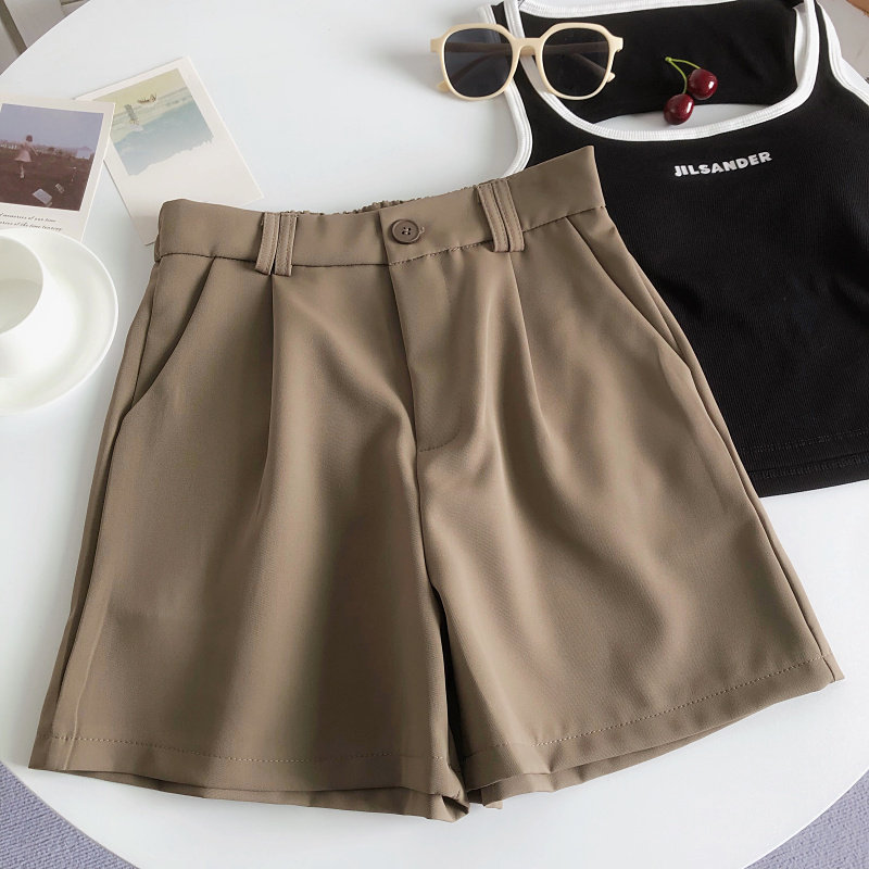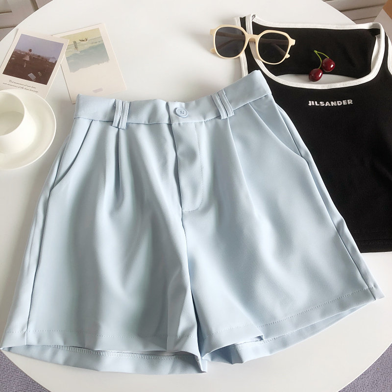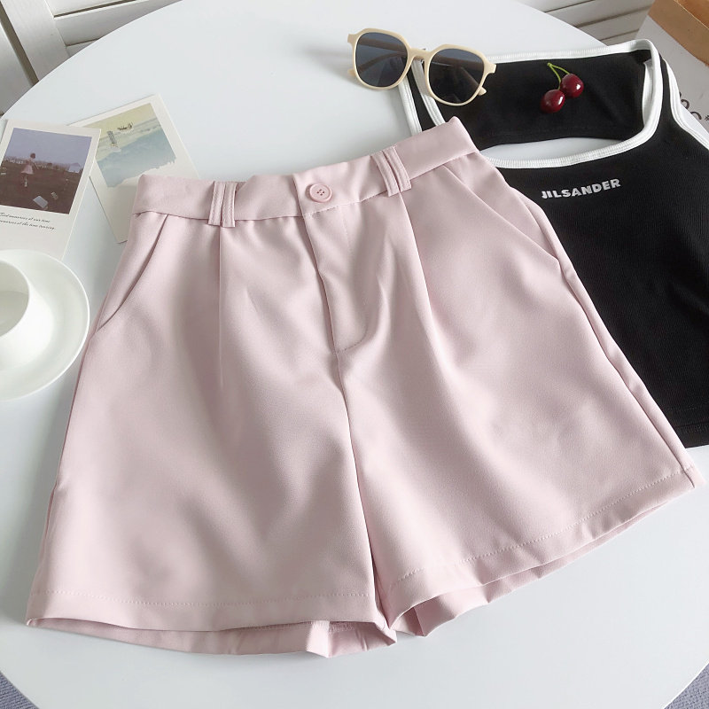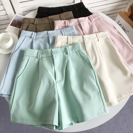 糖果色半松紧高腰显瘦阔腿西装短裤休闲裤女2023春夏新款时尚百搭