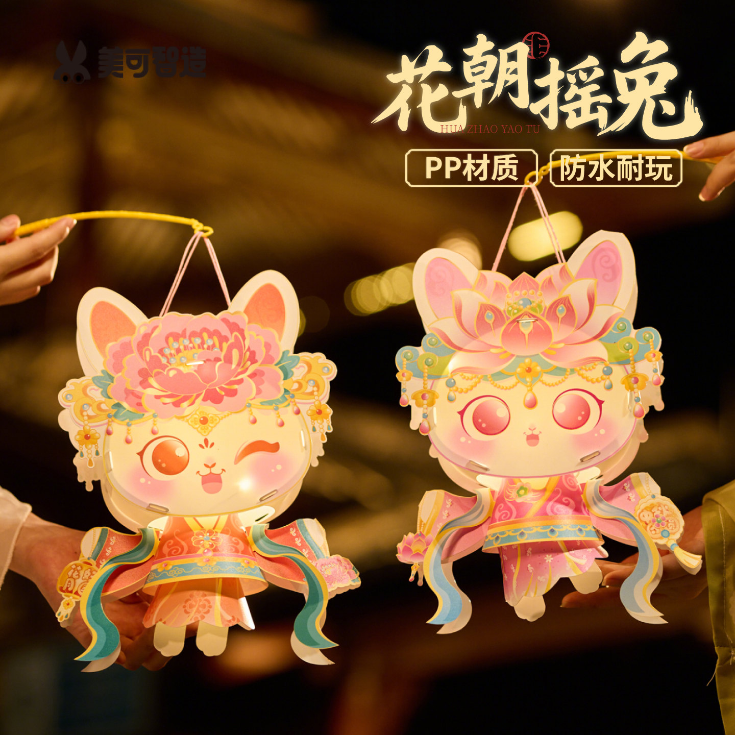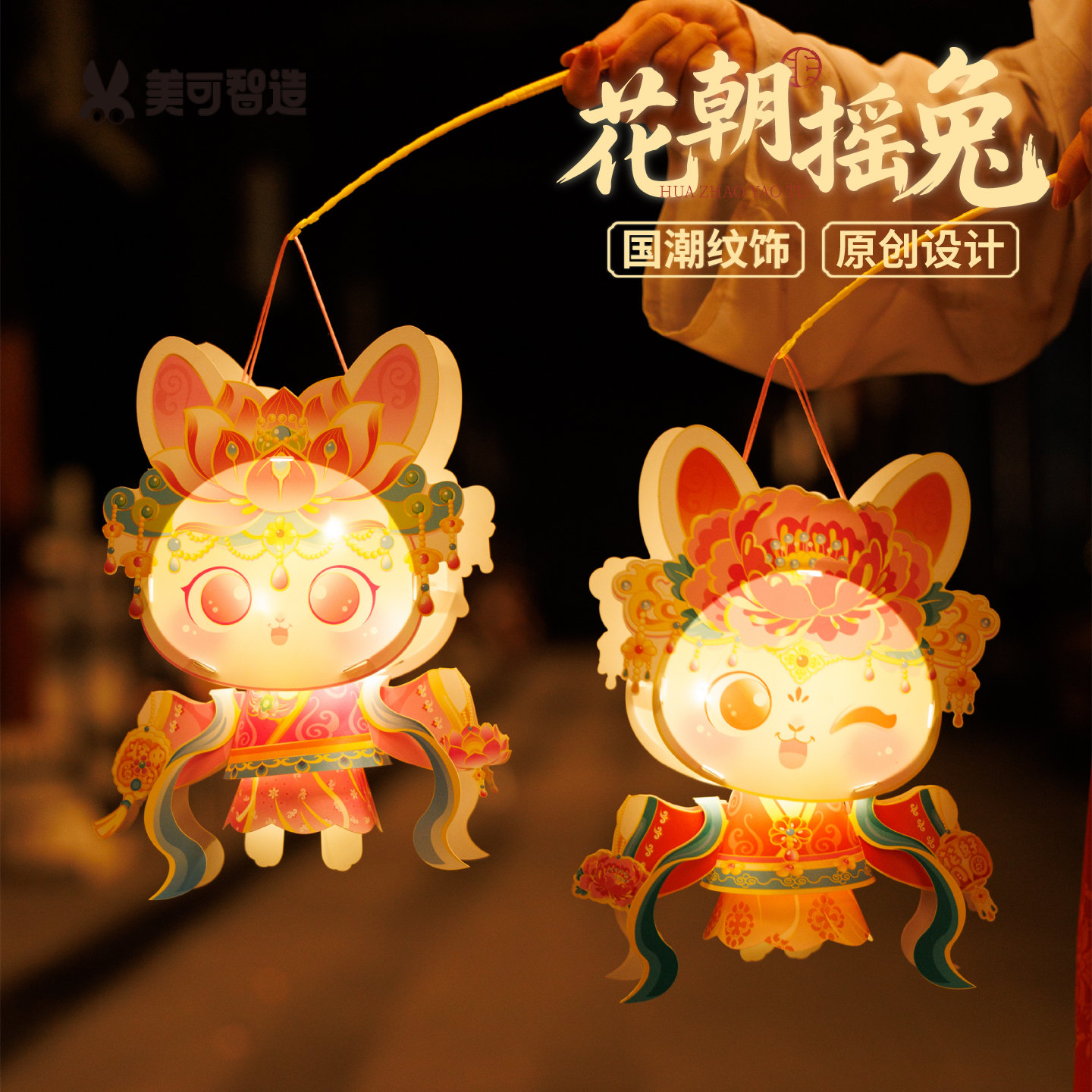 中秋节花朝摇兔灯笼古风玉兔子花灯手工diy儿童制作材料2025装饰