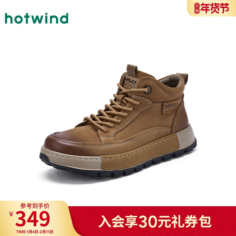 热风男鞋2025年秋季新款男士休闲增高黄色高帮工装鞋子H96M25401