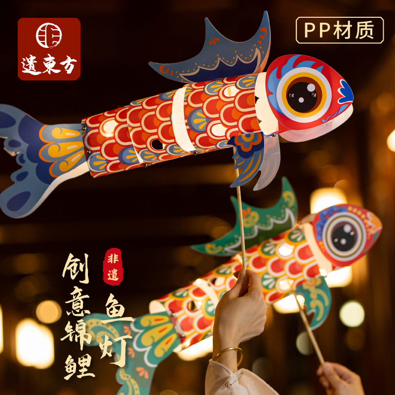 中秋节活动非遗创意锦鲤鱼灯手工diy灯笼金鱼灯制作儿童手提材料