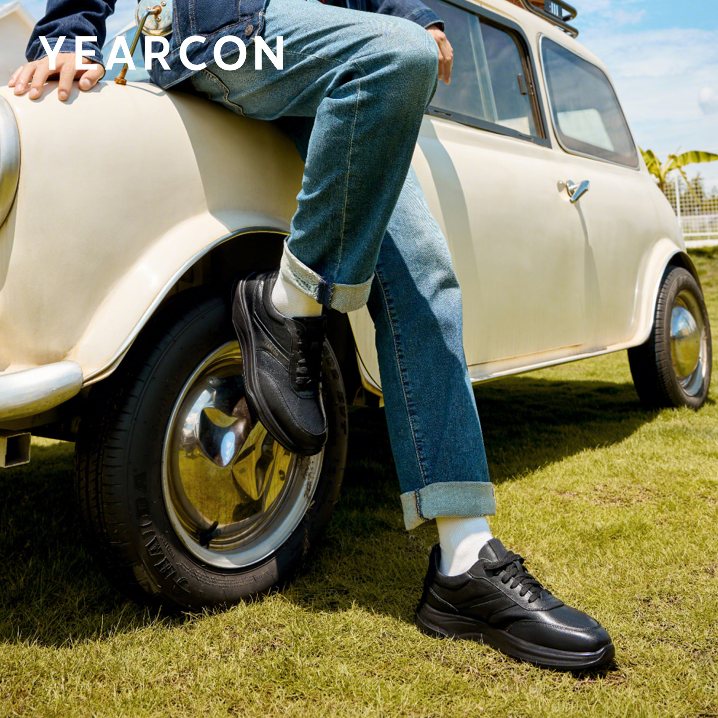 意尔康男鞋2025秋季新款头层牛皮时尚运动皮鞋户外轻便系带休闲鞋