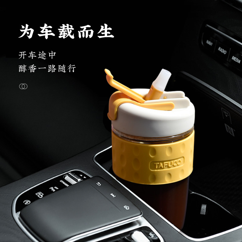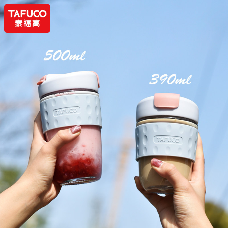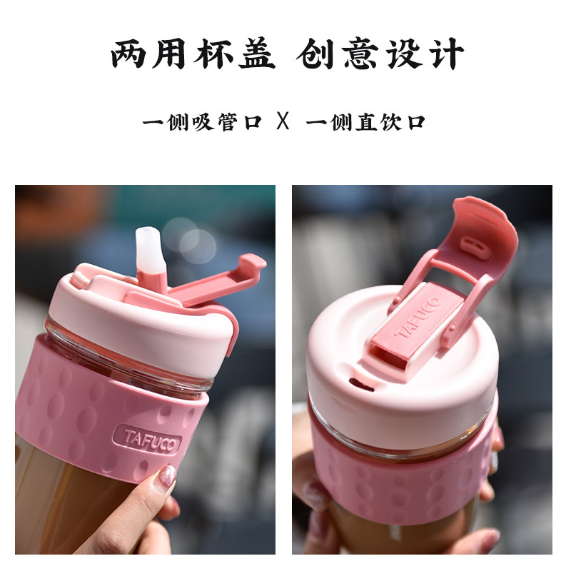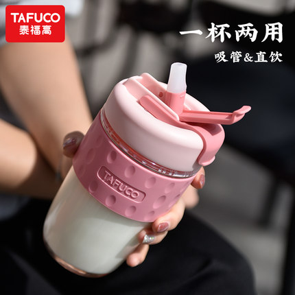 日本泰福高玻璃水杯便携咖啡杯吸管杯女夏季可爱带大容量泡茶杯子