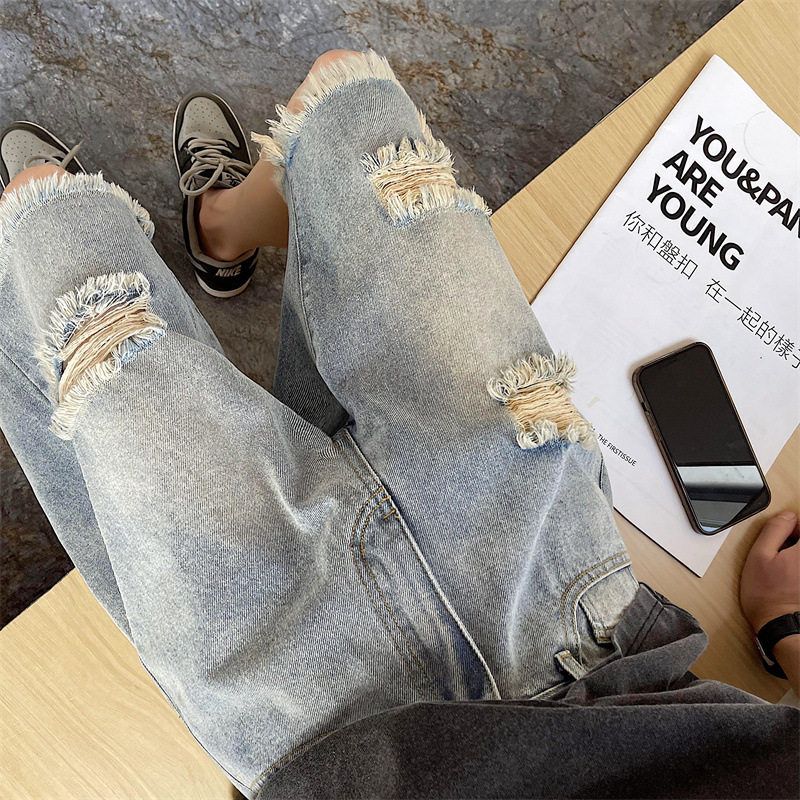 夏季牛仔短裤子宽松薄款破洞乞丐男五分裤休闲毛边ins潮牌裤高街