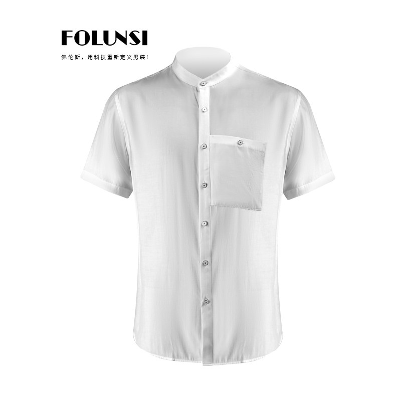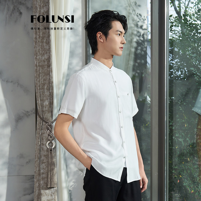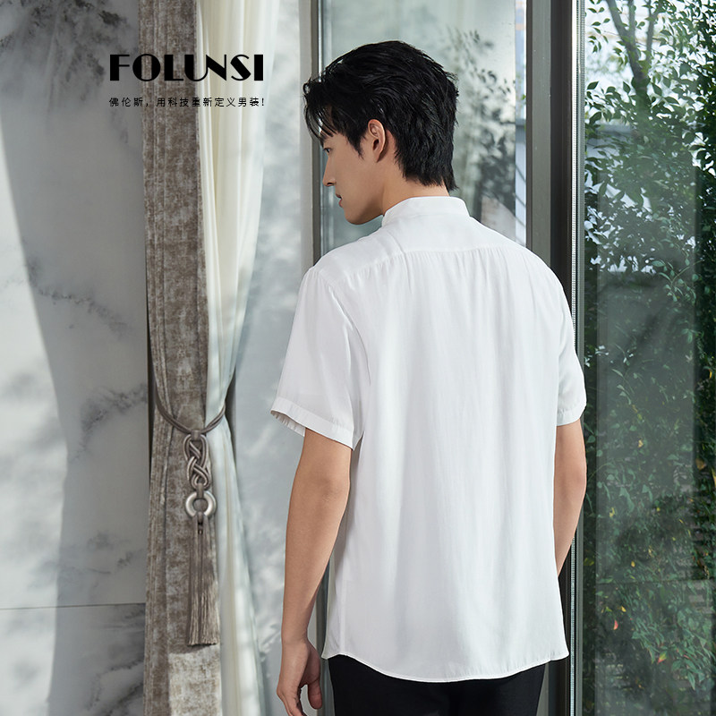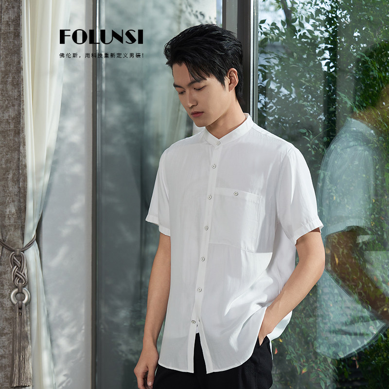 佛伦斯FOLUNSI男衬衣春夏款男士休闲中式立领时尚透气短袖衬衫男