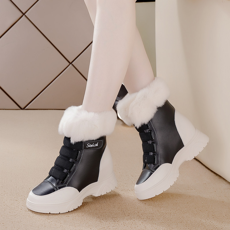 兔毛皮毛一体雪地靴女2025秋冬内增高厚底中筒靴加绒棉靴马丁靴女