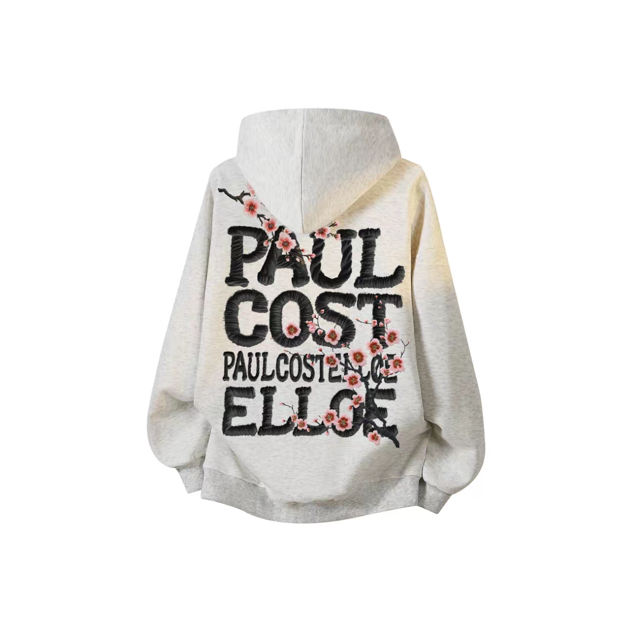 保罗.科斯特洛 美式复古潮牌植物花卉创意印花连帽卫衣 男女同款