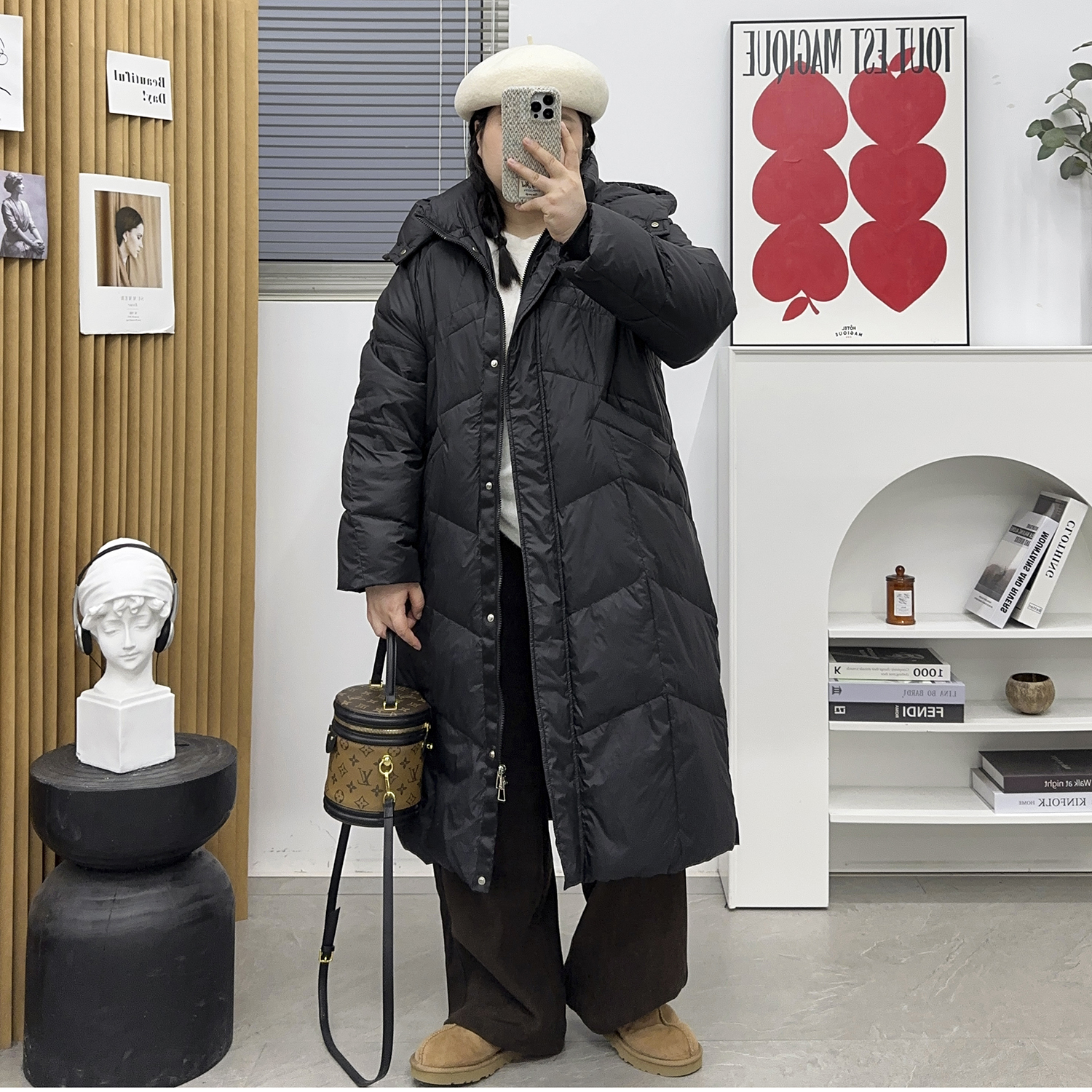 宛宛大码胖MM韩版中长款过膝羽绒服女90白鸭绒连帽宽松御寒外套潮
