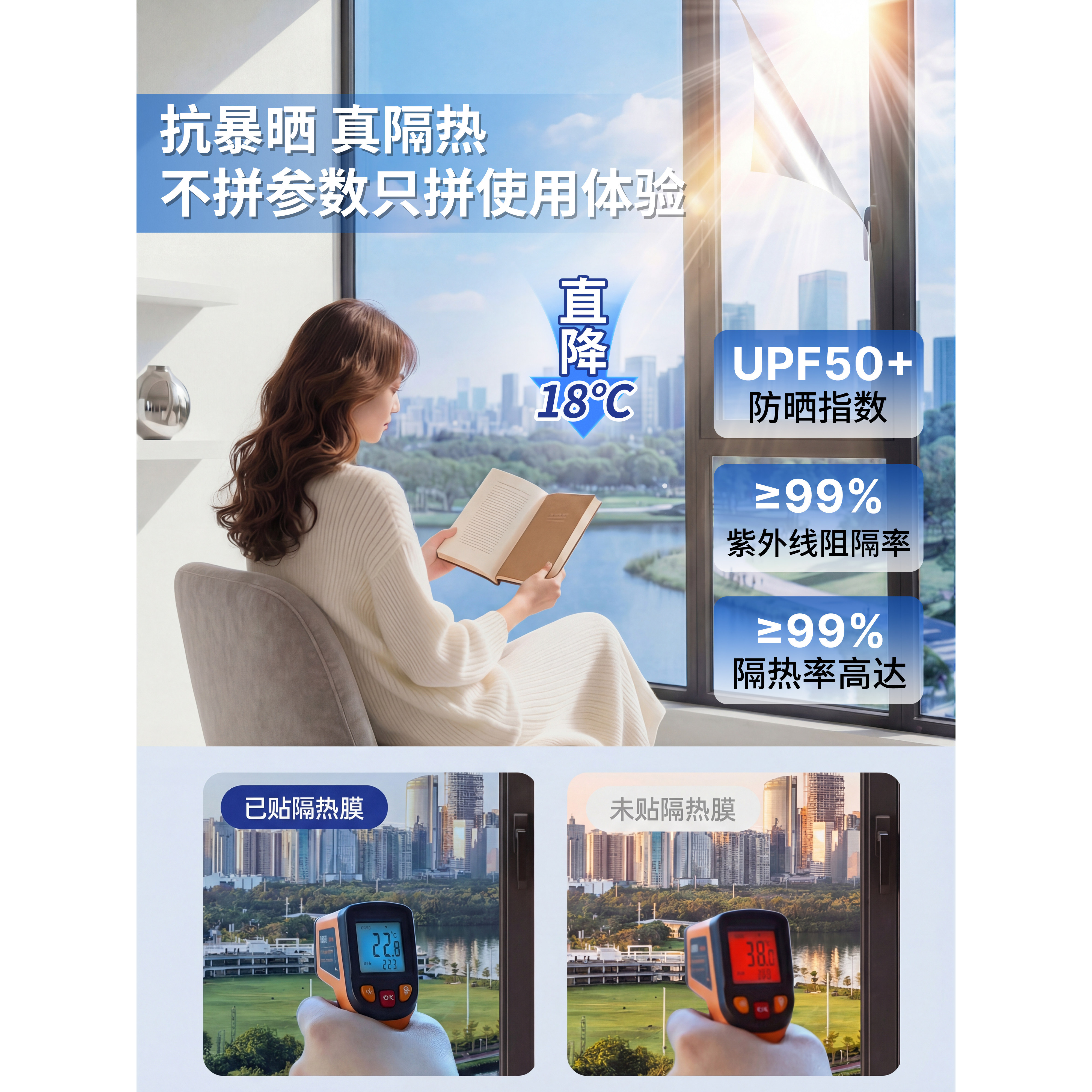 窗户玻璃防晒隔热膜家用防紫外线贴膜防暴晒玻璃贴纸太阳膜遮光膜