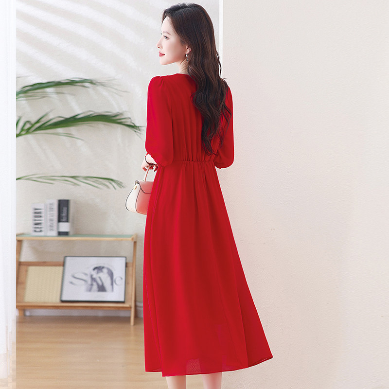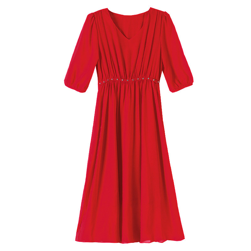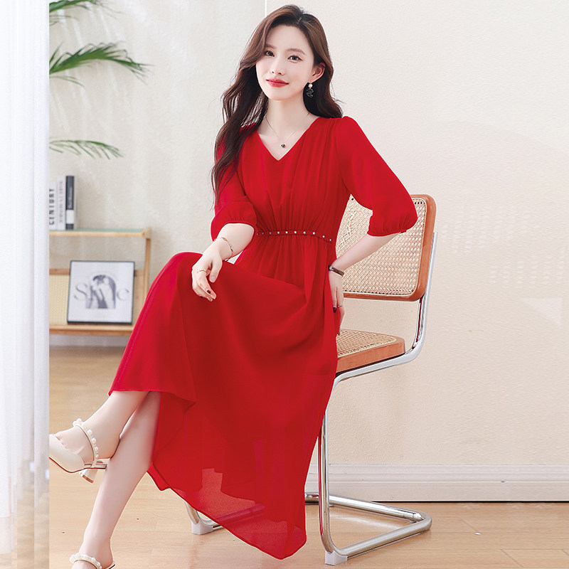 真丝连衣裙女2026夏季新款广州十三行高贵气质显瘦桑蚕丝红色裙子