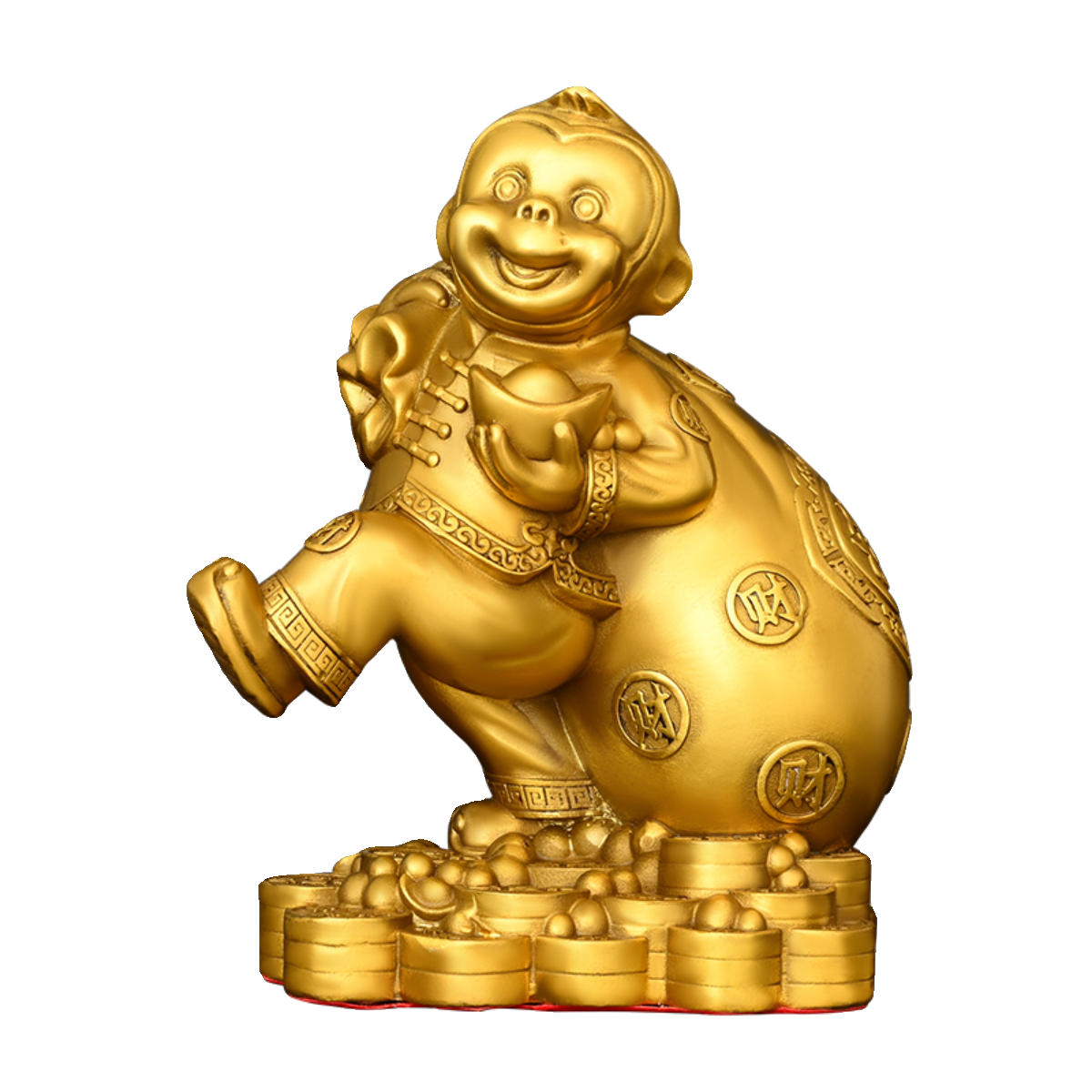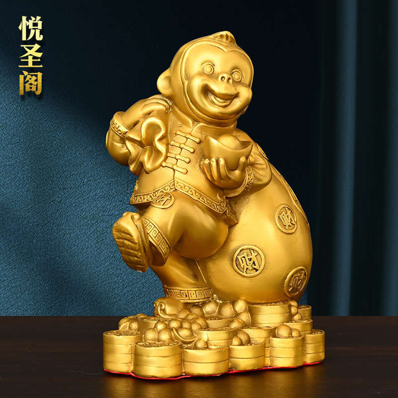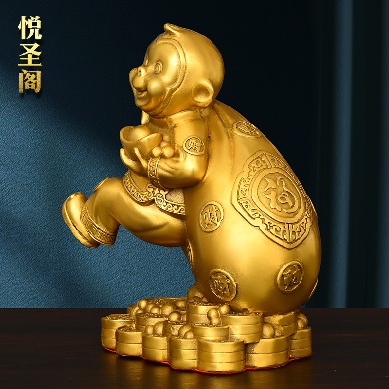 开运纯黄铜猴子摆件风水猴吉祥物十二生肖猴摆设猴摆件背钱袋福猴