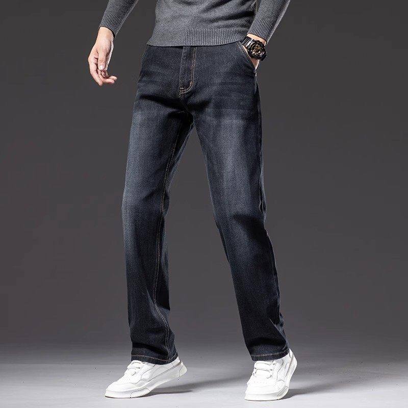 Yishion以纯官方时尚正品加绒加厚牛仔裤男款直筒宽松秋冬季休闲