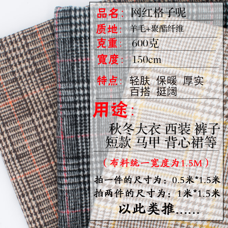 秋冬加厚千鸟格子布料英伦风西装裤呢子大衣马甲羊毛服装粗纺面料