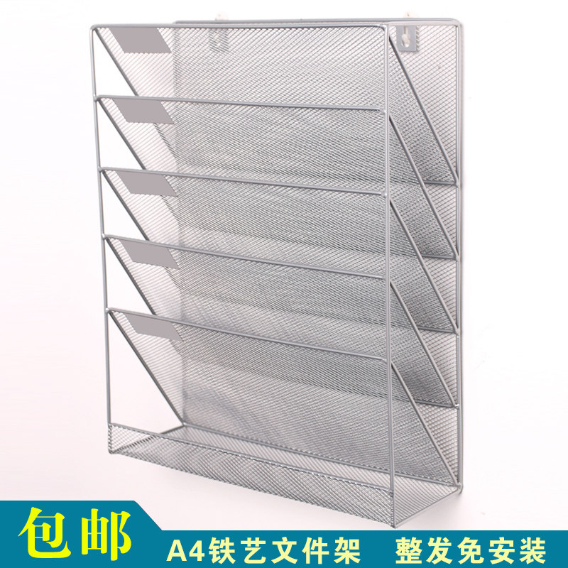 五层A4报刊文件架金属网格挂墙式壁挂架杂志置物架收纳整理办公