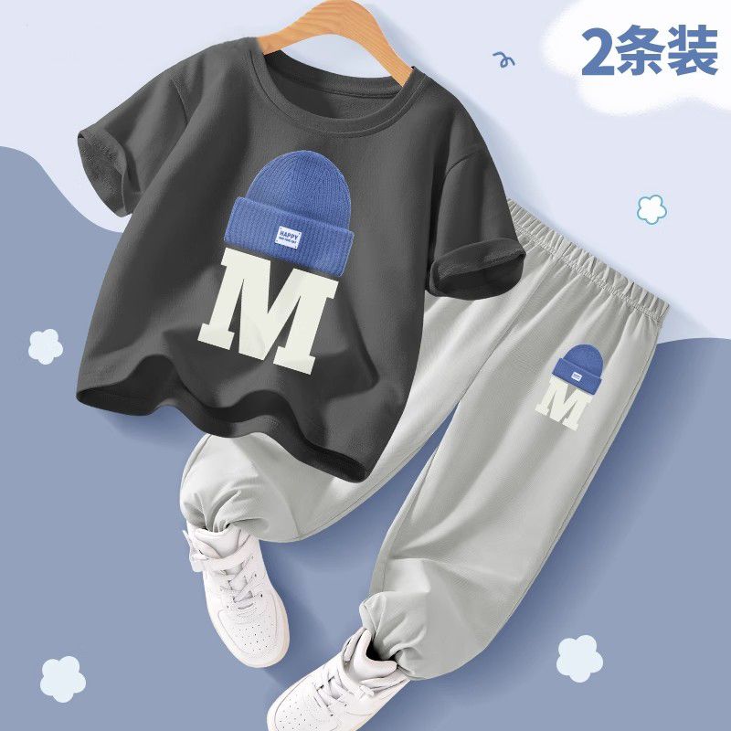 男童夏季套装2025新款运动装男孩夏装纯棉夏款童装儿童短袖上衣潮