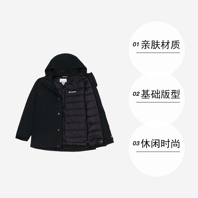 【自营】哥伦比亚冲锋外套男装新款羽绒三合一运动服保暖户外夹克