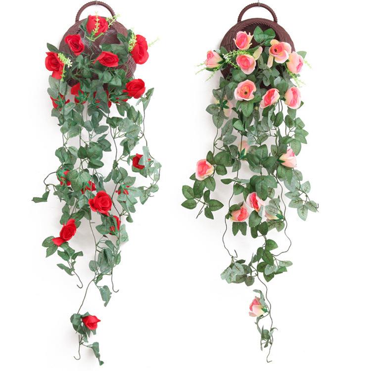 假花仿真花玫瑰花壁挂花吊篮花客厅室内阳台家居藤墙面装饰背景墙