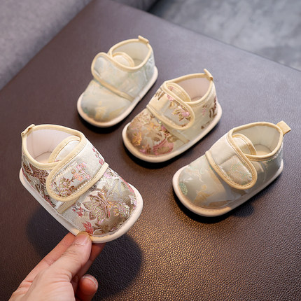 女宝新中式鞋子周岁鞋男宝宝唐装鞋秋季抓周布鞋汉服鞋国风软底鞋
