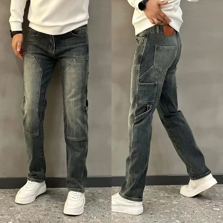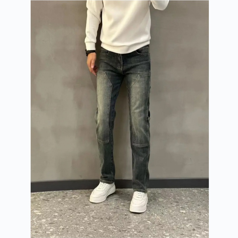 2025秋季新款欧货复古直筒牛仔裤男潮流宽松休闲裤微阔黑色阔腿裤