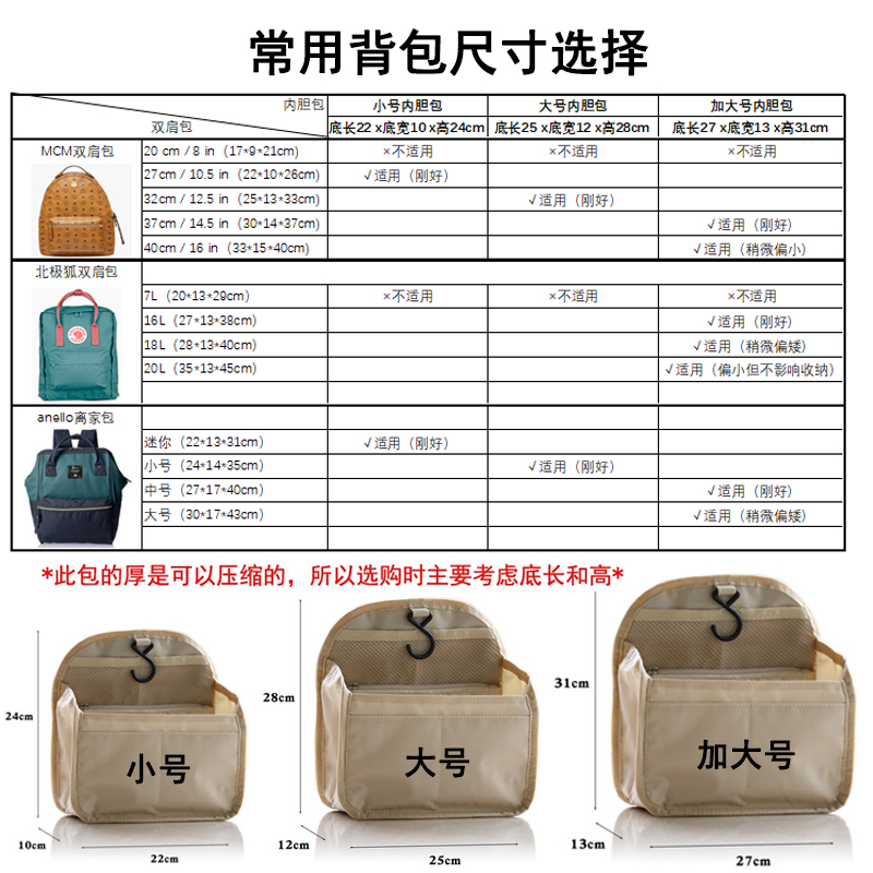 适用北极狐背包内胆apollo双肩包中包竖款分隔内胆包撑袋中袋超轻