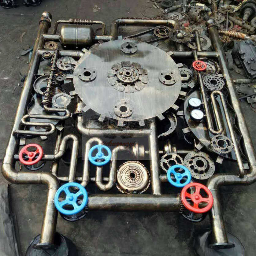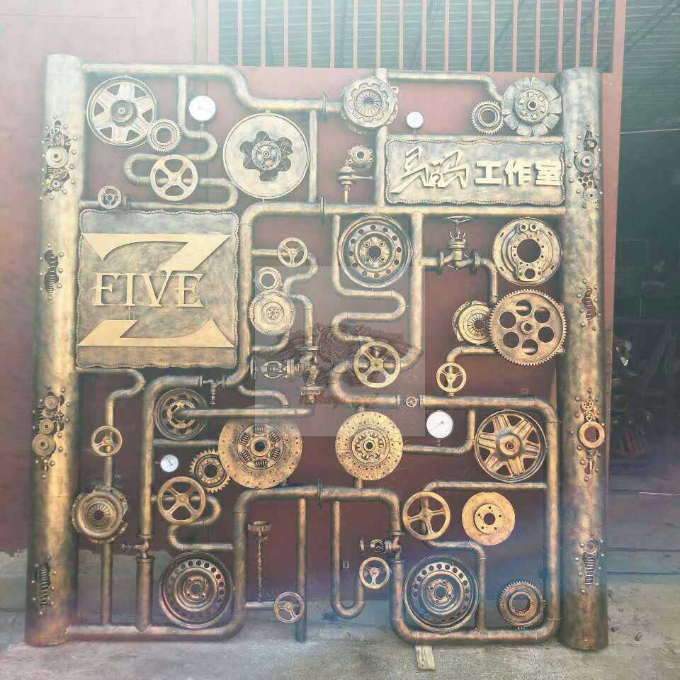 复古工业风铁艺屏风朋克装饰墙饰壁饰齿轮管道重金属摆件制定制