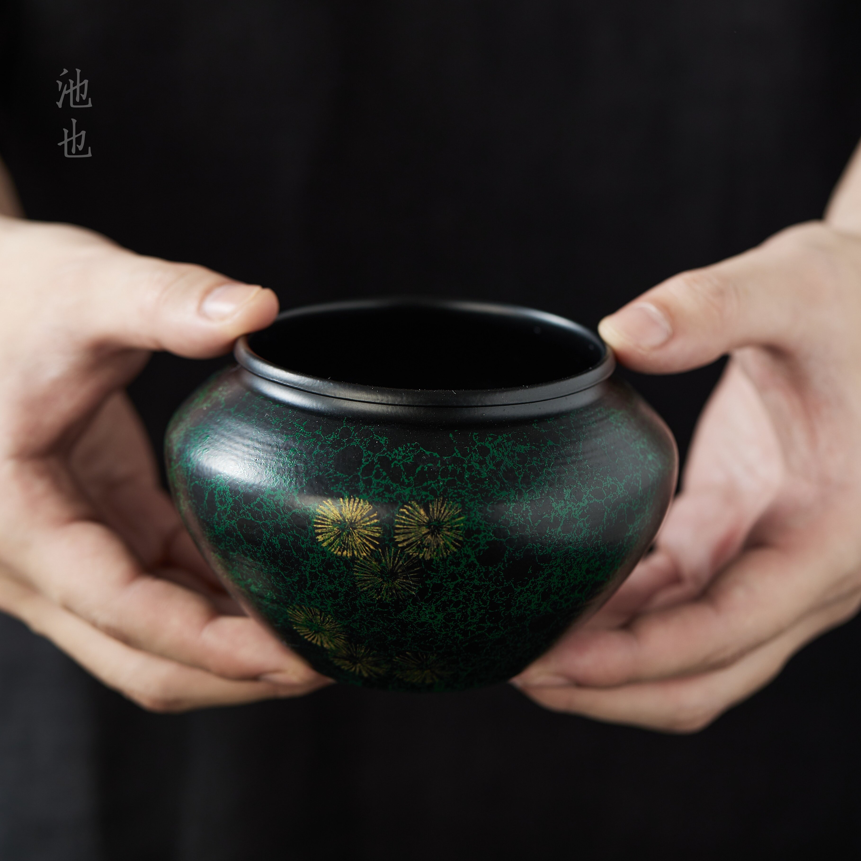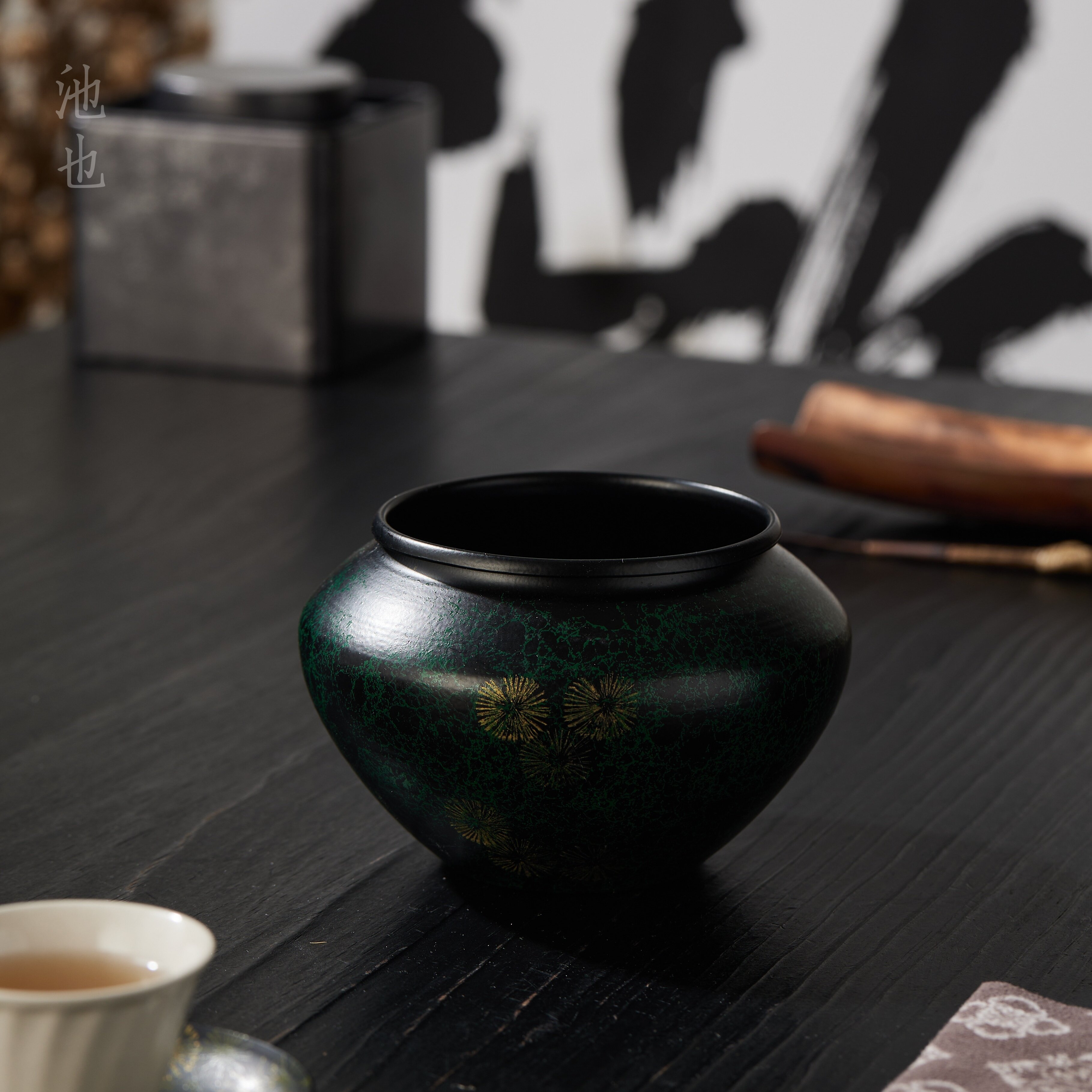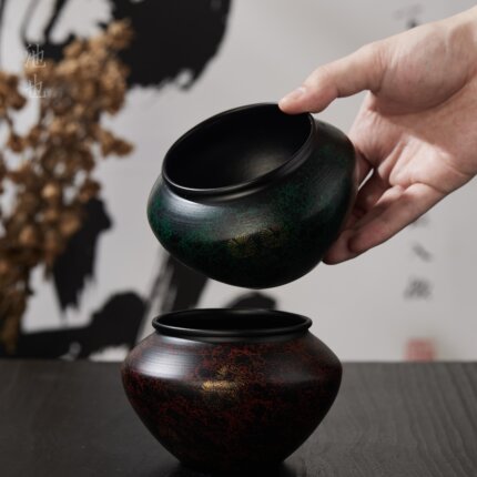 池也复古老铁大漆器茶渣缸家用桌面水盂建水茶水缸废水桶茶配茶洗