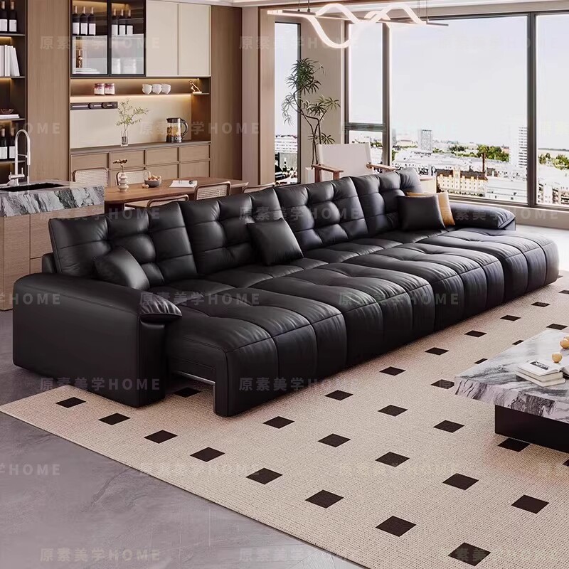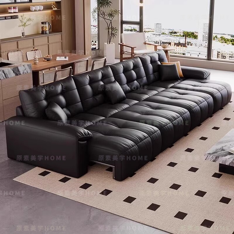 大黑熊电动功能真皮沙发床客厅头层牛皮意式可伸缩直排伸缩沙发床