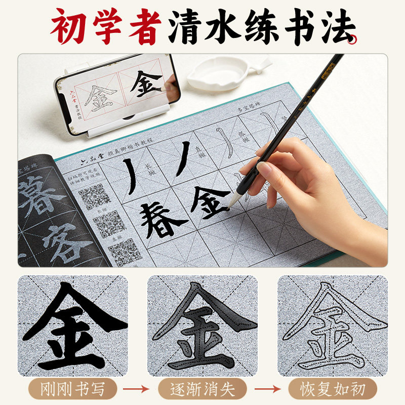 六品堂毛笔字水写布套装初学者练习书法水写本儿童入门练字临摹专用字帖颜真卿楷书仿宣水洗练习布文房第五宝