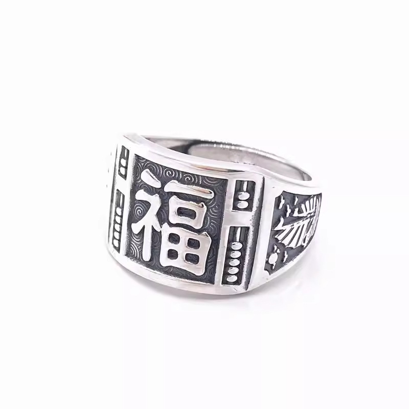 新品时尚流行男士福字财發龙父亲礼物大指环爸爸宽戒指