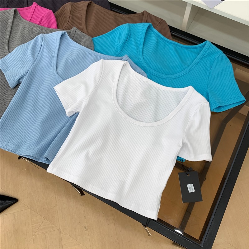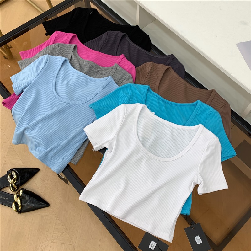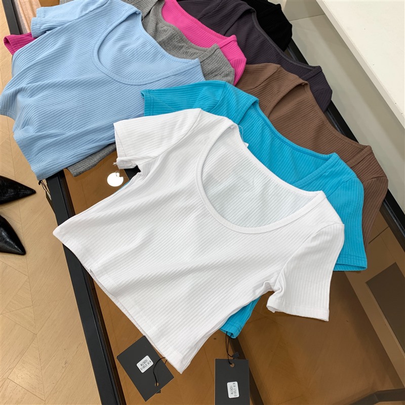 T恤纯色夏季修身百搭小众圆领显瘦短款简约短袖 E#25