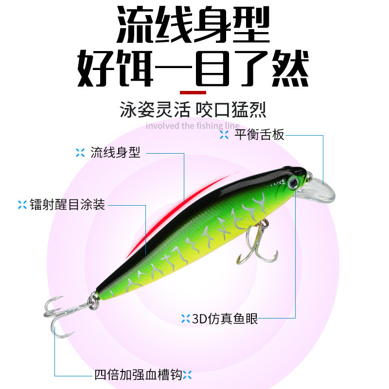 米诺路亚饵 死飞系统银大刀沉水米诺塑料硬饵 全水层假饵