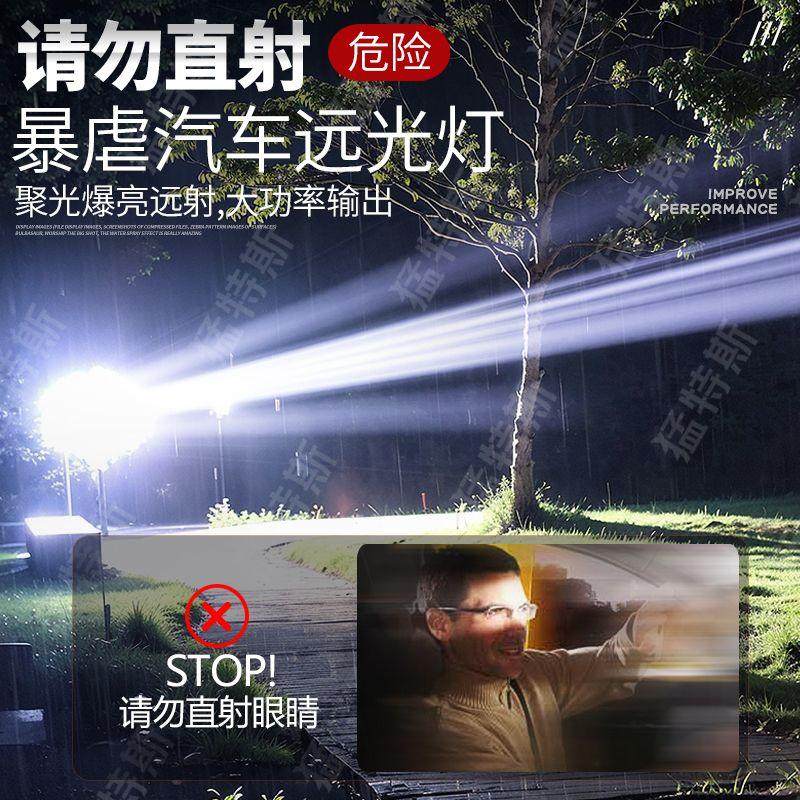 手电筒强光大功率多功能可充电家用便携式户外远射耐用超长探照灯