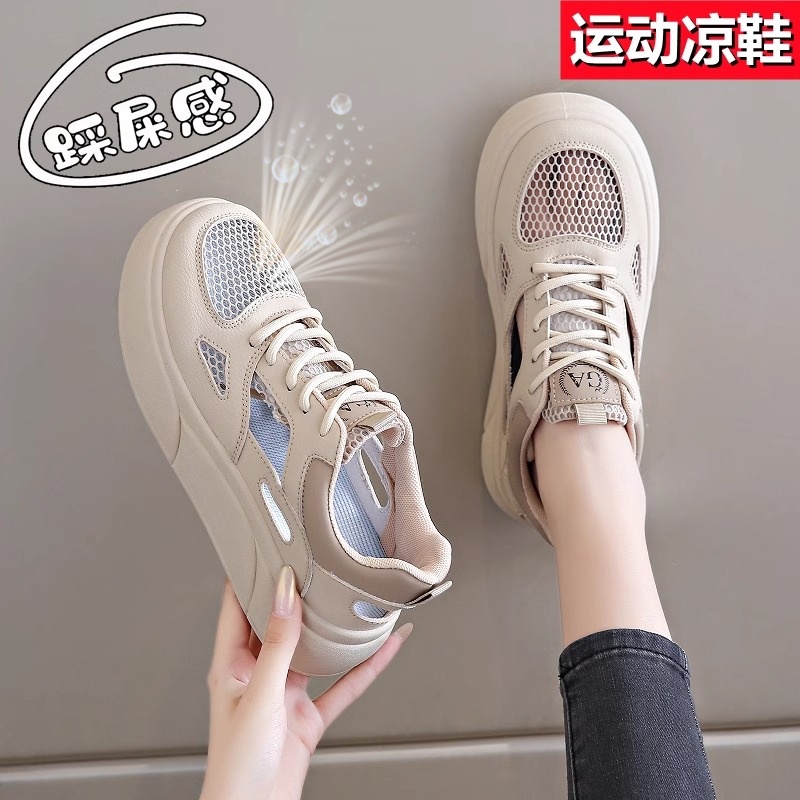 品牌断码真皮洞洞鞋女2025新款网面透气休闲小白鞋运动凉鞋板鞋子
