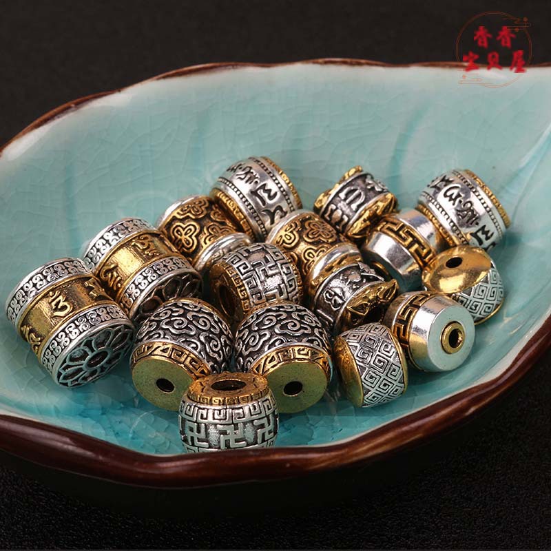藏银六字真言桶珠 文玩串珠饰品材料精美祥云隔珠diy手串项链配件