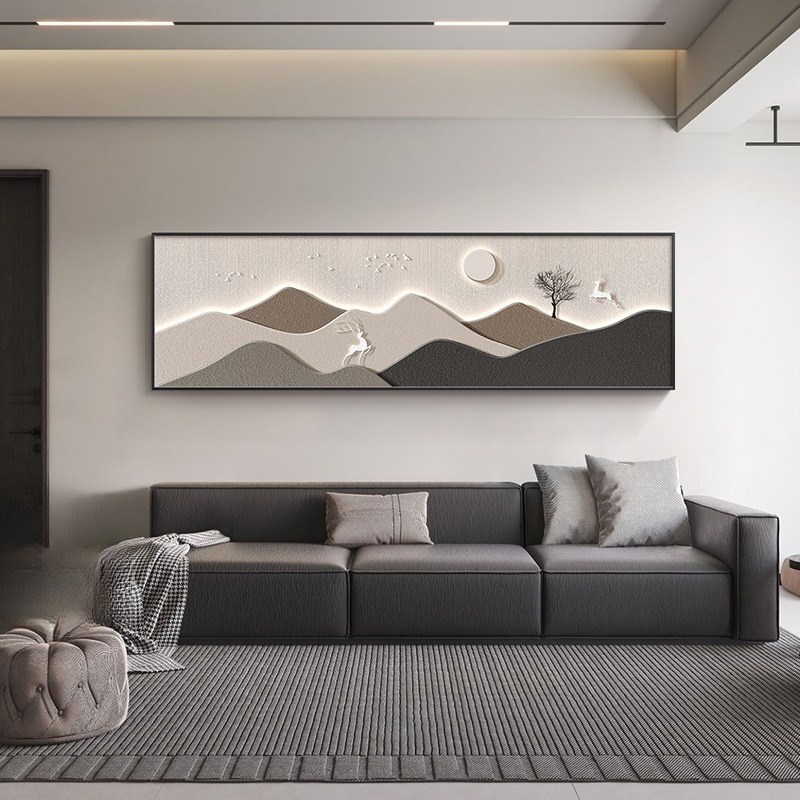 卧室床头装饰画福禄靠山创意横幅房间壁画2023新款现代主卧画挂画