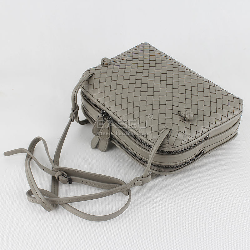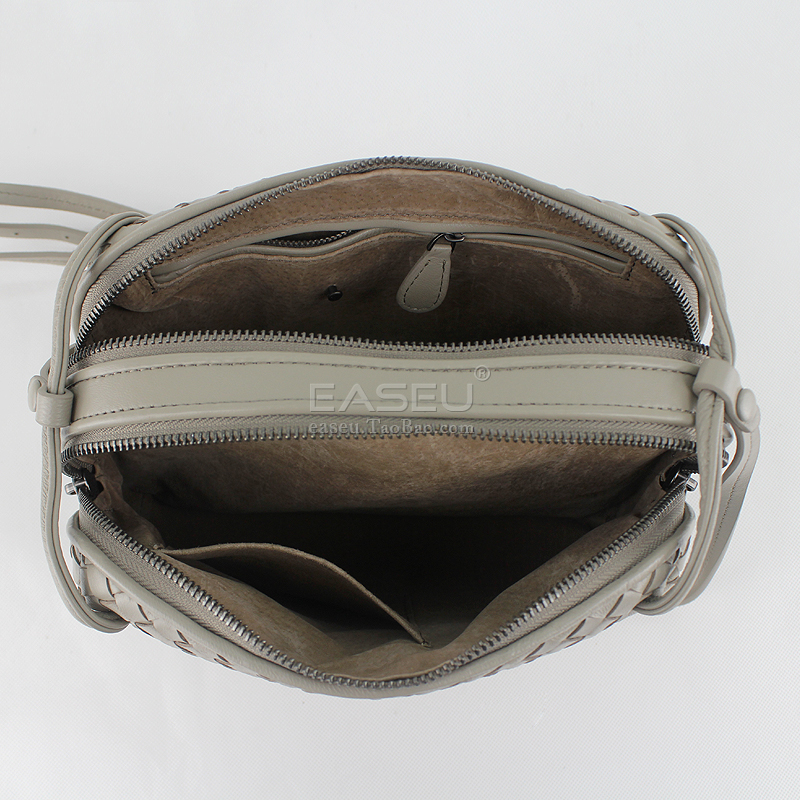 Easeu 夏季新款欧美时尚 真皮绵羊皮编织包女 双层贝壳潮斜挎小包