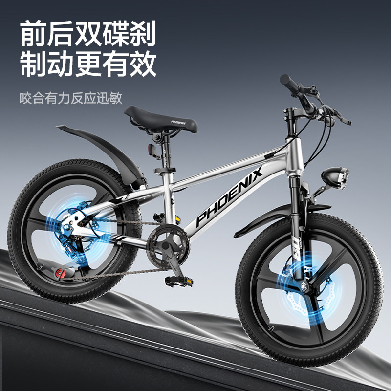 新款凤凰牌儿童自行车6-12岁男孩女脚踏单车青少年学生变速山地车